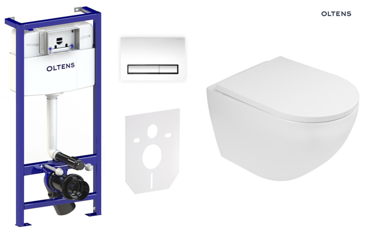 Zestaw Oltens Triberg Hamnes Torne 7w1 stelaż podtynkowy miska z deską 42514000 i przycisk spłukujący chrom błyszczący 58302100