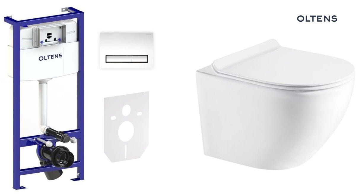 Zestaw Oltens Triberg Hamnes Torne 7w1 stelaż podtynkowy miska z deską 42515000 i przycisk spłukujący chrom błyszczący 58301100