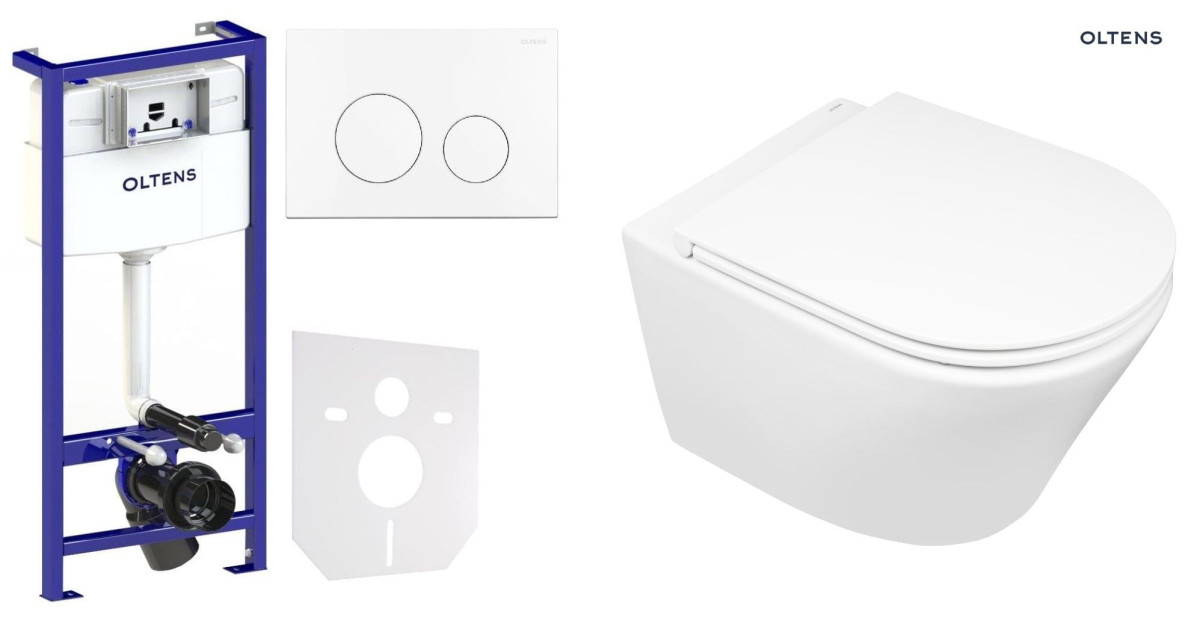 Zestaw Oltens Triberg Jog Lule 7w1 stelaż podtynkowy miska z deską 42005000 i przycisk spłukujący biały 58302000