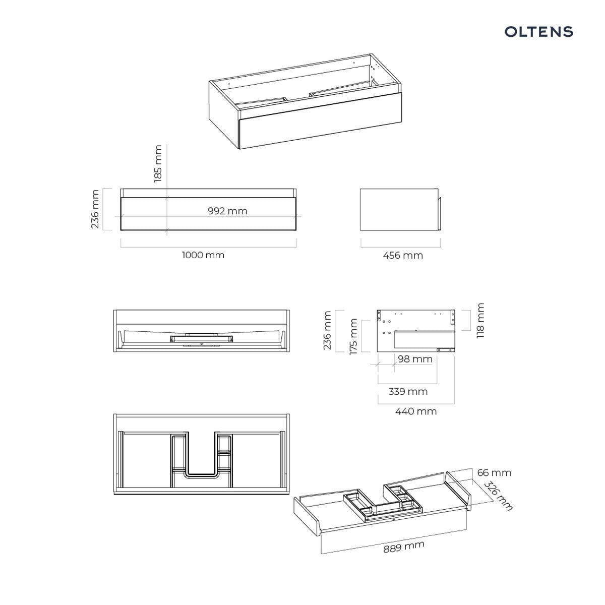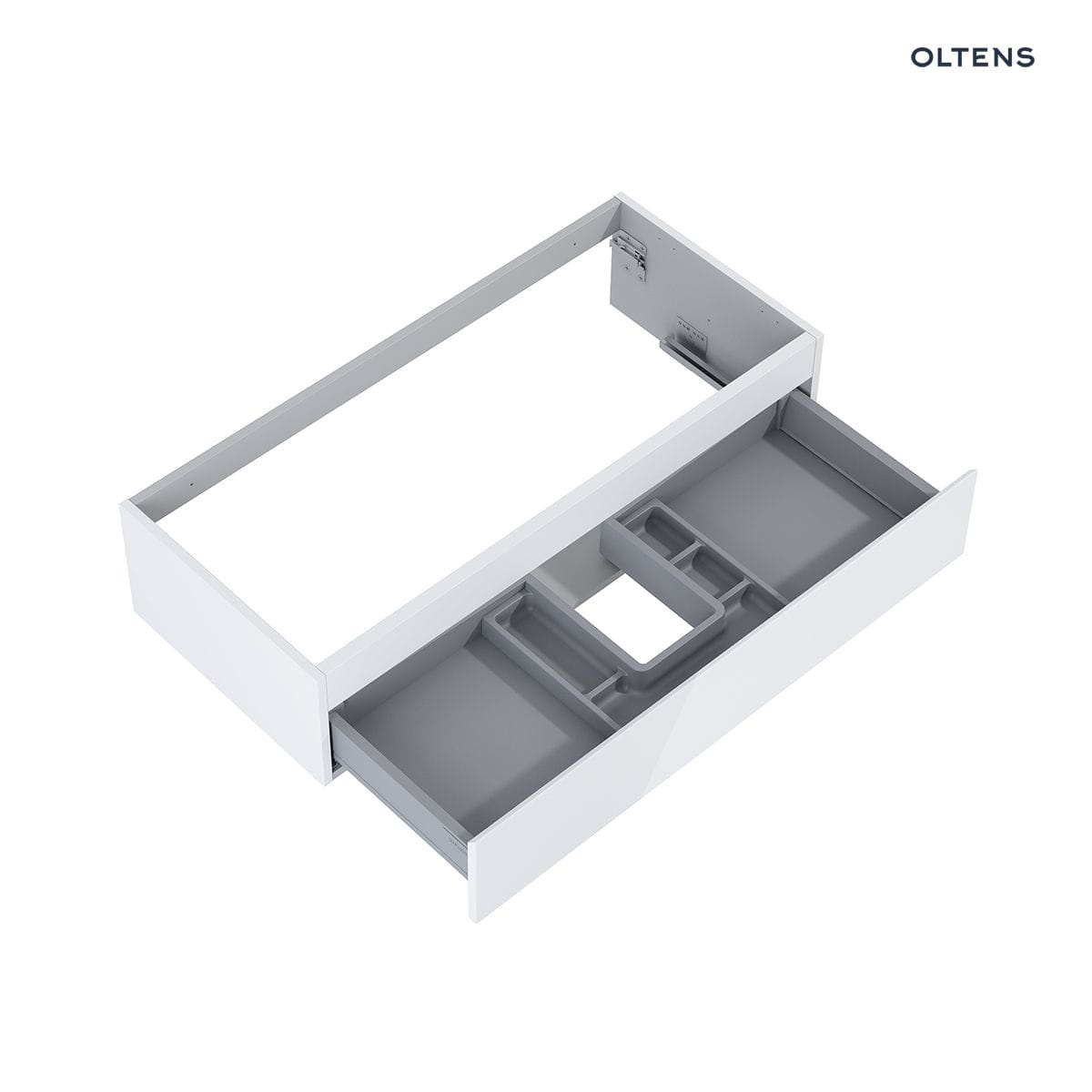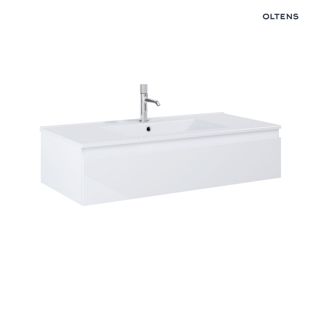 Opis produktu Oltens Vernal umywalka z szafką 100 cm biały połysk 68008000 Oltens Vernal szafka 100×45,6×23,6 cm podumywalkowa wisząca biała 60011000 – wisząca szafka podumywalkowa z 1 szufladą – szuflada z organizerem – prowadnice: pełen wysuw – materiał: płyta MDF, powłoka lakierowana odporna na promieniowanie UV – szerokość 100 cm – głębokość 45,6 cm – wysokość 23,6 cm – kolor biały połysk