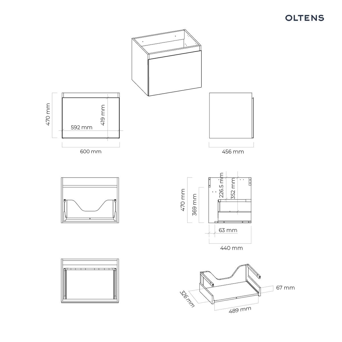 Opis produktu Oltens Vernal umywalka z szafką 60 cm czarny mat 68013300 Oltens Vernal szafka 60×45,6×47 cm podumywalkowa wisząca czarna 60013300 – wisząca szafka podumywalkowa z 1 szufladą – szuflada na prowadnicach – materiał: płyta MDF, powłoka lakierowana odporna na promieniowanie UV – zestaw montażowy w komplecie – szerokość 60 cm – głębokość 45,6 cm – wysokość 47 cm – kolor czarny mat