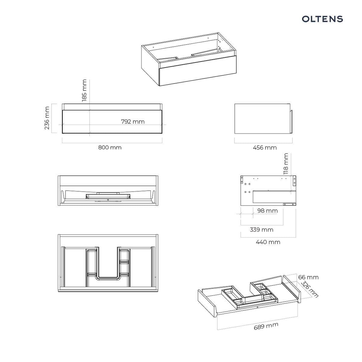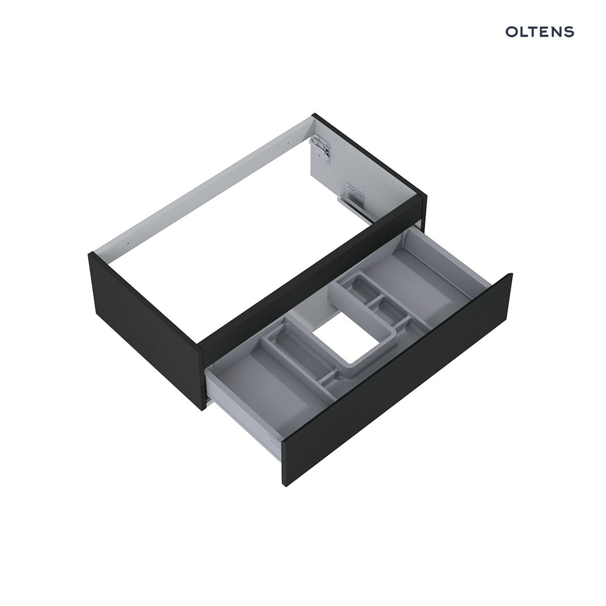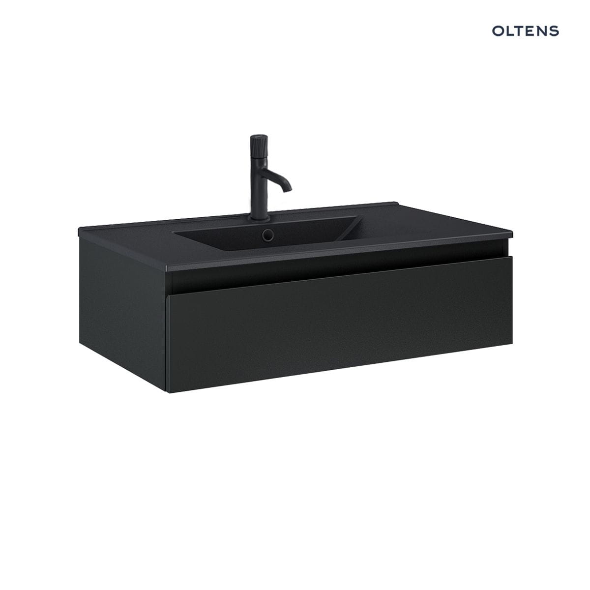 Opis produktu Oltens Vernal umywalka z szafką 80 cm czarny mat 68007300 Oltens Vernal szafka 80×45,6×23,6 cm podumywalkowa wisząca czarna 60010300 – wisząca szafka podumywalkowa z 1 szufladą – szuflada z organizerem – prowadnice: pełen wysuw – materiał: płyta MDF, powłoka lakierowana odporna na promieniowanie UV – szerokość 80 cm – głębokość 45,6 cm – wysokość 23,6 cm – kolor czarny mat
