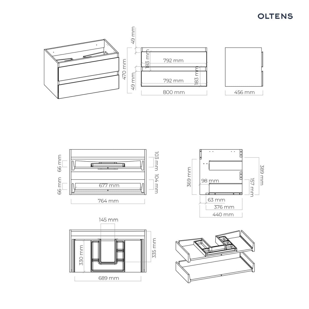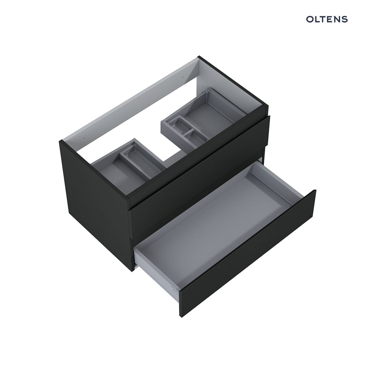 Opis produktu Oltens Vernal umywalka z szafką 80 cm czarny mat 68037300 Oltens Vernal szafka 80×45,6×47 cm podumywalkowa wisząca czarna 60001300 – wisząca szafka z 2 szufladami – szerokość 80 cm – głębokość 45,6 cm – wysokość 47 cm – szuflady metalowe – organizer w górnej szufladzie – w szafce zamontowane są szuflady z systemem Oltens QuietClose czyli systemem cichego domyku (pozwalają one na ciche i delikatne zamykanie szuflad) – zastosowane w szafce prowadnice szuflad pozwalają na pełne ich wysunięcie, dzięki czemu korzystanie z szuflad jest wygodniejsze – waga netto 23,6 kg – waga brutto 25,2 kg – szafka z płyty MDF, powłoka lakierowana odporna na promieniowanie UV – kolor czarny mat